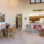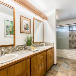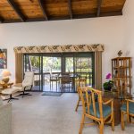 This top-floor residence boasts meticulous upgrades and a testament to pride of ownership. Vaulted wood ceilings with exposed beams grace the living area and primary bedroom, exuding warmth and character. Custom window treatments adorn every window, ensuring both style and privacy. The updated kitchen features an eat-in nook, granite tile countertops, and tiled backsplash. Koa wood cabinets add a touch of timeless elegance to the kitchen and tastefully remodeled bathrooms. A trio of split A/C systems ensures personalized comfort in both bedrooms, living and dining area. While not currently utilized as a vacation rental, this property offers access to the on-site services of Castle Resort & Hotel.