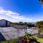 The Kona Coffee Villas condominium complex is conveniently located about 8.5 miles south of Kailua-Kona town and about 6 miles south of Keauhou with its shopping center, movie theater, restaurants, golfing, beaches, and ocean activities near by, and close to the Kona Community Hospital. Situated at a cooler elevation of approximately 1450 feet. A beautiful view of the Pacific ocean and the lush tropical landscape can be enjoyed from the spacious lanai, while relaxing in the living room, savoring your meal in the dining area, and even when preparing dishes in the kitchen. This move-in ready 2 bedroom, 2 bath top floor condo with its cathedral ceiling in the kitchen, living area, dining area, and bedrooms provide a roomy and airy home. Extra storage closets in the living room and guest bedroom foster a clutter-free environment. The kitchen and bathrooms have been remodeled and feature granite countertops and laminate flooring for easy care. This clean and freshly painted home invites you to simply move in and enjoy the ambiance and beauty it has to offer.